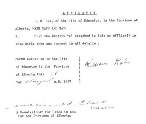 Sworn before William Clark, a commissioner for Oaths in and for the Province of Alberto.